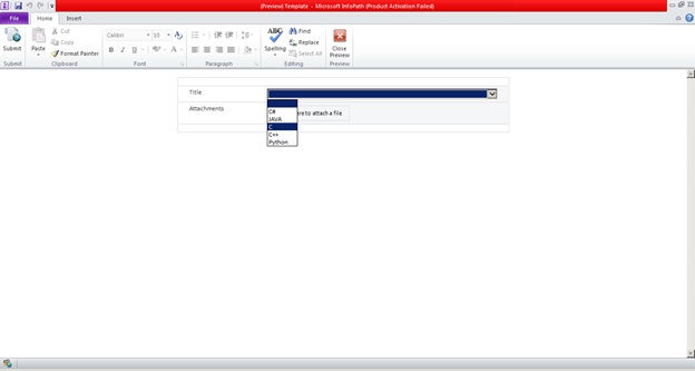 Step 5: Drag a dropdown list on new form as shown in below image.