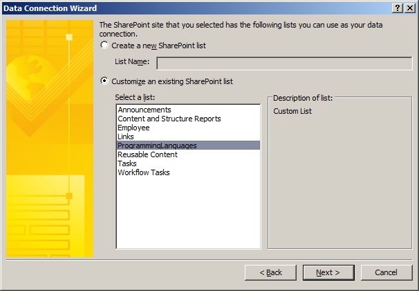 Step 3: Select “Customize an existing SharePoint list” option, and choose your list, click next.