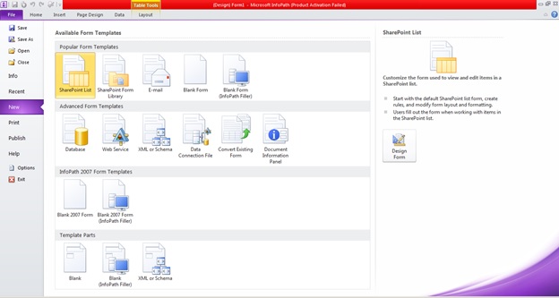 Step 1: Open Microsoft InfoPath 2010, Click on SharePoint List from Available Form Template, as shown in Below screen shot.